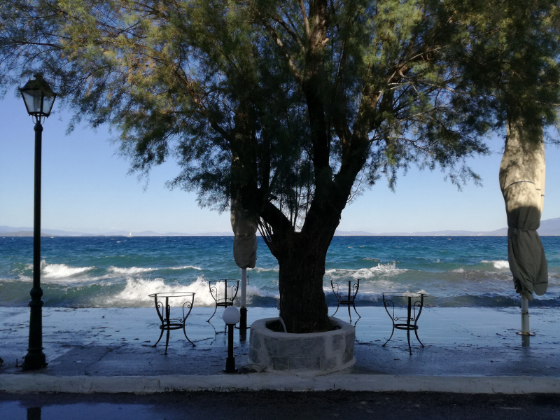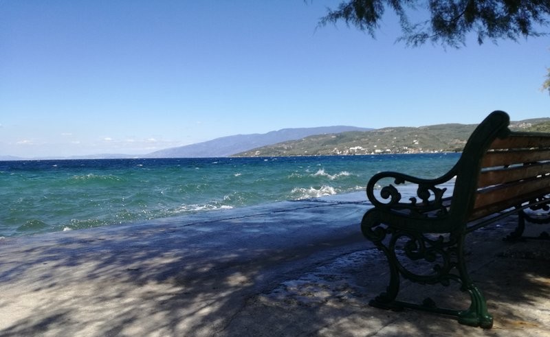 Premier jour d’automne... La plupart du temps, les saisons n'en font qu'à leur tête : combien de Noëls trop verts, de mois d’août pluvieux et froids, de terrasses ouvertes en ville sous le soleil d’hiver, de printemps enneigés ? Mais ici, cette année, l’automne est arrivé d’un coup, ce matin, 21 septembre. Le soleil a surgi sur la mer, comme tous les jours, mais il faisait vraiment frais. L'air était tellement clair, on voyait toutes les Sporades, Chalkidiki, le Mont Athos. Hier encore, la nuit avait été chaude, estivale. Ce matin, nous étions blottis sous la couverture. La mer, hier encore si calme, si douce, s'est agitée au cours de la journée, même dans le golfe.