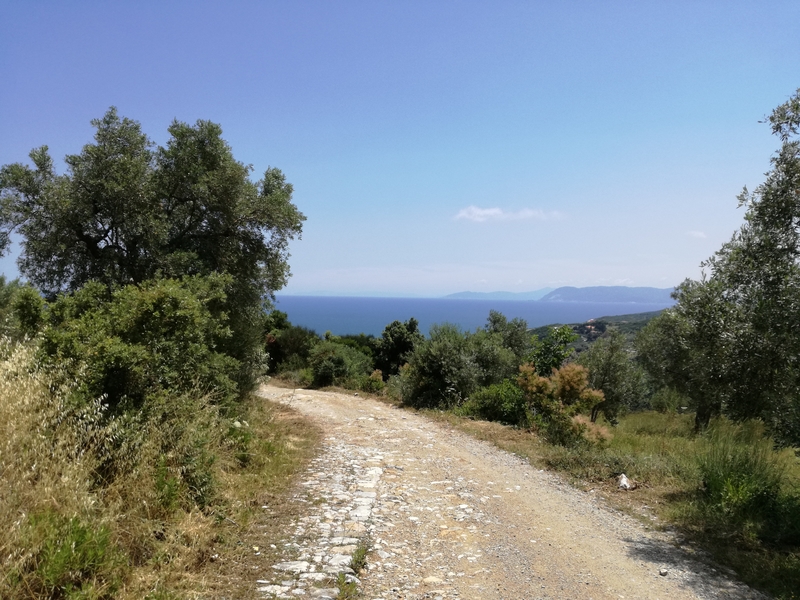 À l’époque, une seule route descendait vers le côté ouest de Potistika. On ne pouvait pas passer d’un côté à l’autre de la plage en voiture. Au bord des routes, on croisait plus souvent une paysanne sur son âne ou sa mule, un troupeau de chèvres ou de moutons qu’une autre voiture. L’électricité, l’eau courante, le téléphone ? Rien de tout ça ! Pas de poteaux électriques, de lignes de téléphone, rien ne coupait le paysage magnifique qui se révélait à mes yeux lorsque nous avons pris, la première fois pour moi, la vieille route qui serpentait vers la mer, bordée de broussailles, route en terre, ancienne, qui descendait tout d’abord vers une source, pour remonter ensuite la colline, et dévoiler soudain la mer à travers les champs d’oliviers. Dans la Renault 18 blanche, pas de silence recueilli, mais la Messa da Requiem de Verdi à plein volume, avec les idoles d’Armand : Mirella Freni et Nicolai Ghiaurov.