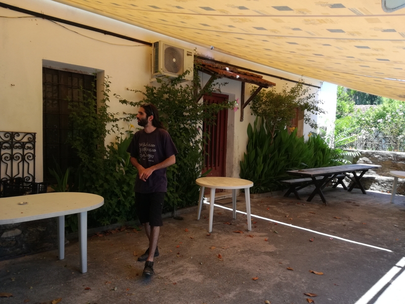 Horto, c’est un petit village dans une anse du golfe un peu avant Milina depuis Argalasti. On y trouve quelques bars et restaurants, une épicerie, un port minuscule, une rivière, deux ponts. Il y a aussi un musée, un théâtre, un kiosque dont le store en fer a été peint par des enfants. Et dans le musée qui ne semble pas en être un, et qui pourtant propose des expositions, des concerts et d’autres d’activités culturelles et sociales depuis des années, il y a deux pianos : un droit dans une petite pièce pleine d’instruments et de bric-à-brac, et un autre à queue, installé sur l’estrade de la pièce principale, prêt pour le stage de jazz qui aura lieu dans quelques jours, ou pour les concerts du mois d’août. C’est Nikos qui l’a amené ici, mais c’est Artemis, souriante et pleine d’énergie, qui vient donner les clés du musée à Sassoun afin qu’il puisse jouer du piano pendant que je prends mon cours de poterie.