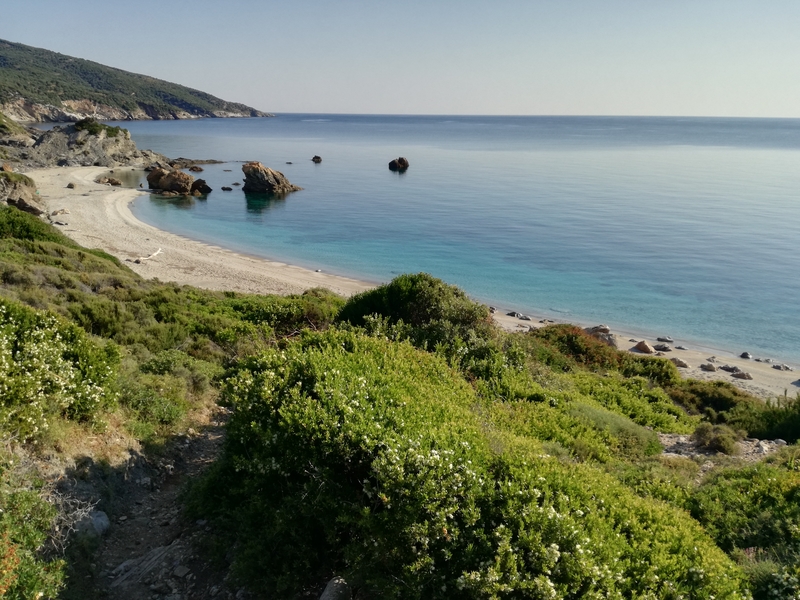 21 juin, mes oreilles se sont ouvertes à la première journée d’été sur le chant des cigales, qui a remplacé le gazouillement des oiseaux, tôt le matin. Un vrai premier matin d’été ! Je suis descendue à la plage vers 8h, après un petit-déjeuner préparé par mon amoureux. J’avais envie de danser, la mer était transparente, l’air embaumait des derniers jasmins, les senteurs de garrigue commencent à remplacer le parfum des genêts et des tilleuls, le thym et les myrtes fleurissent de concert, petites fleurs violettes et blanches à l’allure discrète qui attirent les guêpes et les abeilles.