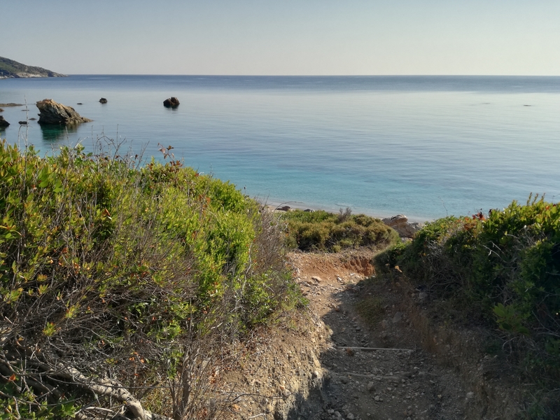 Comment rêver d’un sentier plus joli pour descendre à la mer ? Et pourtant, combien de centaines de fois l’ai-je emprunté, le matin, soleil sur mon épaule gauche, en fin d’après-midi, soleil sur mon épaule droite. Avec Armand, avec les enfants autrefois, avec Vicky qui a peur des serpents, souvent seule. Il faut regarder là où on met les pieds afin de ne pas glisser sur les pierres qui dégringolent sur la terre sèche, alors on s’arrête, souvent, pour contempler la baie de Como, qui imite si bien les lagons des mers lointaines, du moins je l’imagine puisque je n’en ai jamais vu.