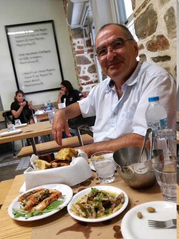 Ce matin, temps gris incertain, chaleur juste agréable, nous allons acheter des hauts-parleurs à Volos afin de contrer, avec des airs d’opéra, les horribles chansons du voisin devenu dingue (eh oui, il a recommencé…!). Et puis en profiter pour manger chez MeZen, le tsiporadiko de la rue Alonyssou.