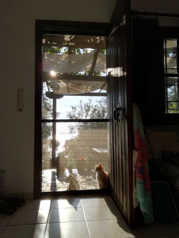 Au réveil, les chats sont là. Comment se fait-il qu'ils reviennent toujours, dès notre arrivée? Qu'ils se souviennent de nous, après 8 mois?
