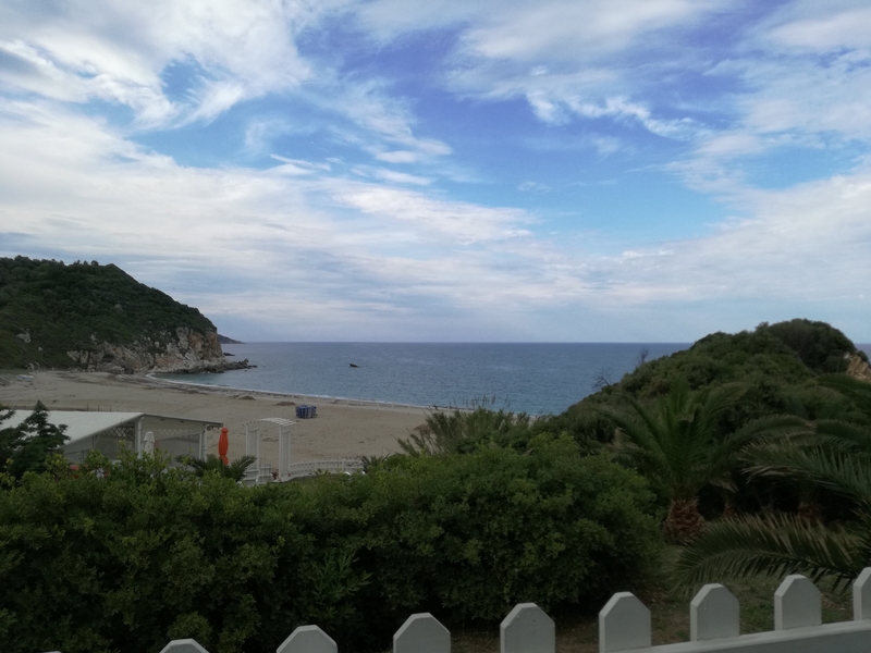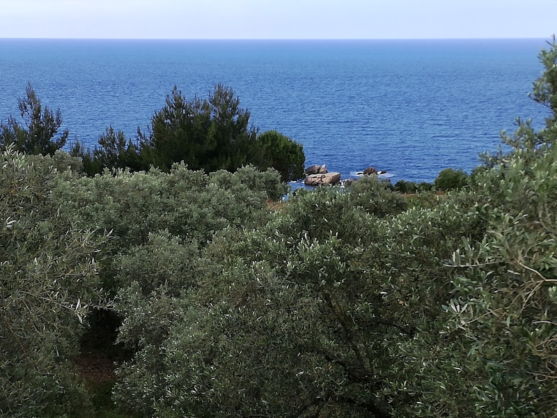 Dans l'après-midi, je descend à Potistika. J'aime tous les chemins qui mènent à la mer ici. Les petits sentiers, la route, la vue étourdissante sur la mer, tout ça malgré les fils électriques, l'asphalte, je ne vois que ce que j'ai envie de voir, la beauté de cet endroit, ses couleurs, ses odeurs. L'entrée sur la plage, c'est un petit choc de joie chaque fois que j'arrive ici à nouveau, on quitte la route, on grimpe sur la bosse de sable et on redescend vers la plage, immense. Premier bain, la mer est délicieusement froide, la vue est belle, quel régal, je flotte, je plonge, j'aime la sensation de l'eau sur la peau, les yeux qui piquent un peu, bonheur parfait.