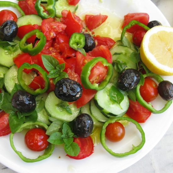 Pour l’instant, je profite de manger encore quelques uns des ces tentants délices grecs, tant que nous sommes encore ici: tous les jours, descente légère à la plage et remontée qui me semble parfois bien raide, nage dans la mer du matin sous le soleil qui monte toujours plus haut toujours plus chaud ou le soir, avant qu’il ne disparaisse derrière la colline, laissant le sable encore tiède; longues heures de lecture, ce plaisir que je peux enfin pratiquer sans remord, à n’importe quelle heure, dans le hamac qui se balance doucement entre les deux oliviers, ou sur le lit, aux draps tirés, lisses et frais; repas en amoureux ou en compagnie, avec des mets simples: tomates du jardin de Vicky et Kostas, ou de celui du beau et vieux monsieur qui les vend pour presque rien sur le trottoir à côté de l’église à Argalasti, basilic de notre terrasse, poisson pêché par Armand ou Kostas, ou par le pêcheur qui les présente dans sa camionnette, olives bios achetées à cette femme toute ronde au beau sourire sur le bord de la route, et café frappé – au sucre de canne complet tout de même – accompagné d’une douceur confectionnée au « fournos » d’Argalasti et vendu par des jeunes filles qui nous remercient avec un sourire en anglais, thank you verrry maatch!