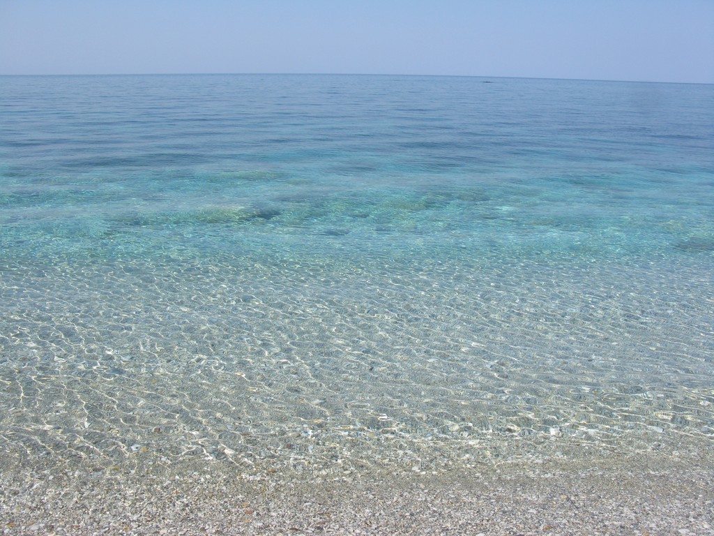 Silence assourdissant des cigales, mer parfaitement lisse, plage déserte sous le soleil de juillet… je profite de chaque instant après les turbulences des derniers jours. Armand est parti plonger avec Tom entre Potistika et Melani, je vais descendre d’ici quelques instants, regarder et empiler des petits galets de la plage, de toutes les couleurs, voir à perte de vue la mer étale, cet azur si pâle… Bonheur tranquille de n’avoir rien à faire, pas de devoirs, pas d’horaire, seulement des envies, envie de descendre par l’oliveraie du voisin, les cigales s’envoleront sur mon passage et m’aspergeront dans leur affolement, les herbes sentent bon la sauge, le thym, la menthe, la myrte. Même pas envie de lire! Seulement de respirer, marcher, nager, rêver…