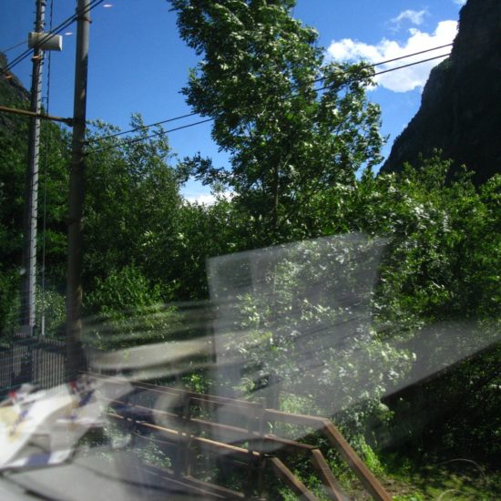 Le train, depuis Lausanne, suit le bord du lac Léman, magnifique lui aussi, serpente dans les vignes du Lavaux, passe derrière Cully, à quelques mètres du Château de Chillon, se dirige vers les Alpes qui, exceptionnellement, semblent cacher de gros nuages. D’habitude, après la grisaille du Nord, on est accueilli par le soleil au sortir du tunnel. Cette fois c’est le contraire ! Mais Stresa est dans un rayon de soleil, ses deux îles reposant dans un lac serein. Après, petite pluie, lecture, on s’assoupit, bercés par les oscillations du train qui fonce dans la campagne grise.