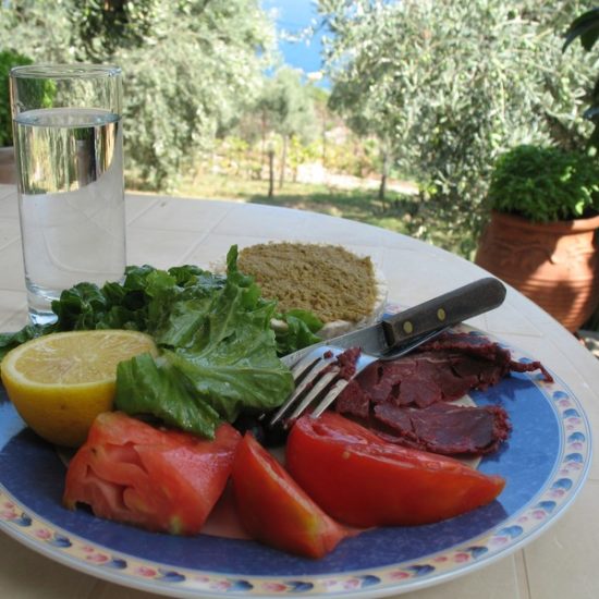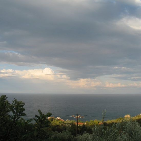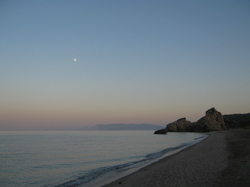 En attendant, chaque moment ici est prétexte à la fête : une assiette de salade, un café accompagné de kourabiès, une ballade pour aller voler des figues dans un champ voisin, un bouquet de quelques fleurs, descendre à la plage et contempler la vue splendide sur l’horizon lointain, les bleus changeants de la mer et du ciel, les herbes folles et les buissons sauvages, regarder la lune se lever sur la mer et son reflet scintillant, contempler la voûte céleste, les étoiles et la Voie lactée allongés dans le hamac…