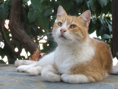 En guise de souper, Armand s’est fait fondre du fromage grec caoutchouteux accompagné de tomates, et moi j’ai mangé deux Kourabiès, ces délicieux biscuits sablés aux amandes, recouverts de sucre glace. Un régal, délicieusement pas diététique, avec un « faux » café Bambu chaud. A midi, je m’étais retenue d’en manger plus qu’un, ce soir je craque – même en écrivant il me vient l’eau à la bouche mais je me retiens à la perspective de la friture de poissons qui nous attend chez Carlas tout à l’heure.