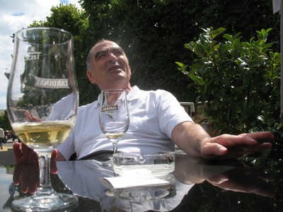 A Neuchâtel, une bière sur le côté de la gare, au soleil, 12h33, départ pour Berne. Quelques pas dans le sous-voie à lécher la seule vitrine, celle de la librairie, puis à 13h34 (Armand dira 13h33 pour la beauté de la répétition), départ pour Milano, via Domodossola ! Nous montons dans le wagon restaurant, pour manger une assiette de pâtes et un Zürcher Geschnetzeltes – émincé de veau aux Spätzli. Il fait gris, très gris, les paysages se succèdent, très verts après un été pluvieux, Armand somnole, je lis mon roman anglais passionnant, The Sins of the Father, que Loukia m’a prêté.