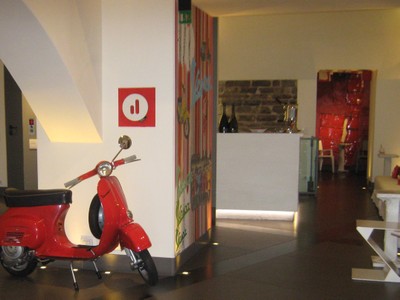 Nous entrons dans la Citta Alta par un portail monumental et après quelques détours dans les ruelles pleines de vie, de touristes et de délices exposés dans les vitrines, nous arrivons au GombitHotel, très design, très italien.