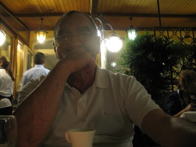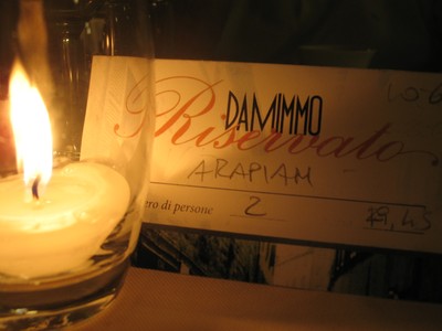 Chez Mimmo, restaurant plein de touristes, mais aussi de Bergamasques, nous sommes accueillis par un très vieux monsieur – l’année passée c’était une très vieille dame, ils s’alternent peut-être ? Un garçon nous amène à notre table, dans un jardin intérieur où nous dégustons un délicieux repas italien, plein de parfums et de soleil, apporté par des serveurs stylés, souriants et rapides.