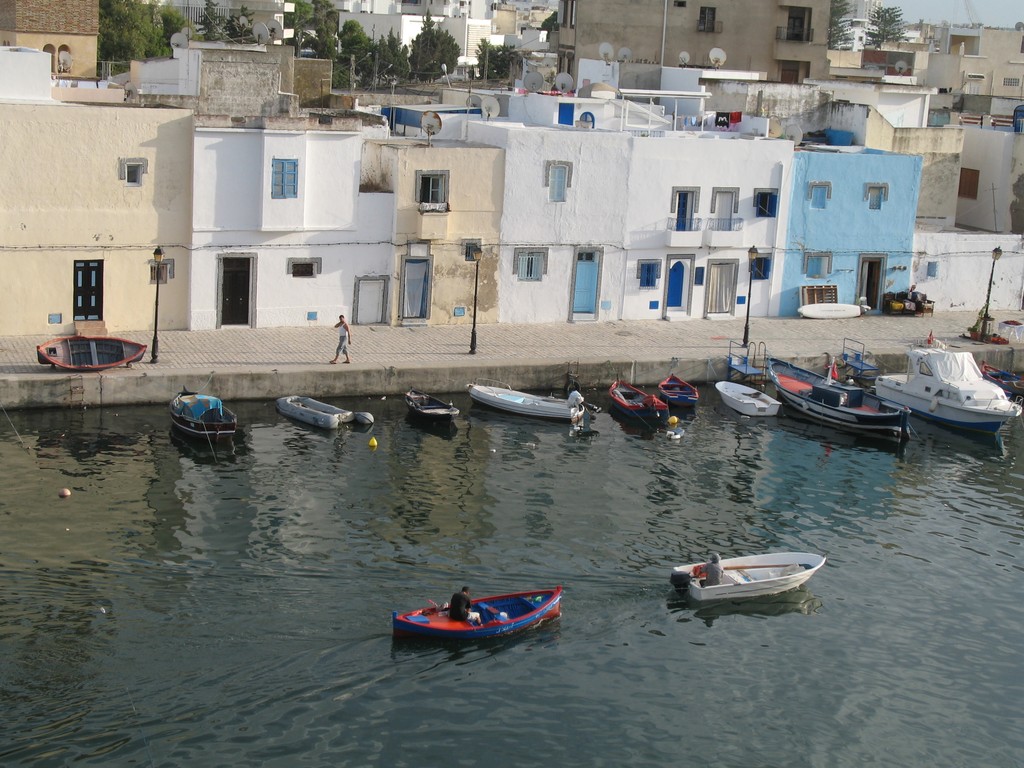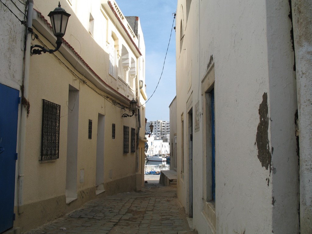 Nous arrivons à Bizerte sans avoir réservé de chambre, mais avec une adresse dans la médina, trouvée sur un site interne d’hébergements de charme. Nous nous dirigeons vers le vieux port, où nous buvons un thé avant de nous mettre à la recherche de l’entrée de la médina, avec un nom et une adresse griffonnés sur un bout de papier et un numéro de téléphone qui sonne, toujours sans réponse.