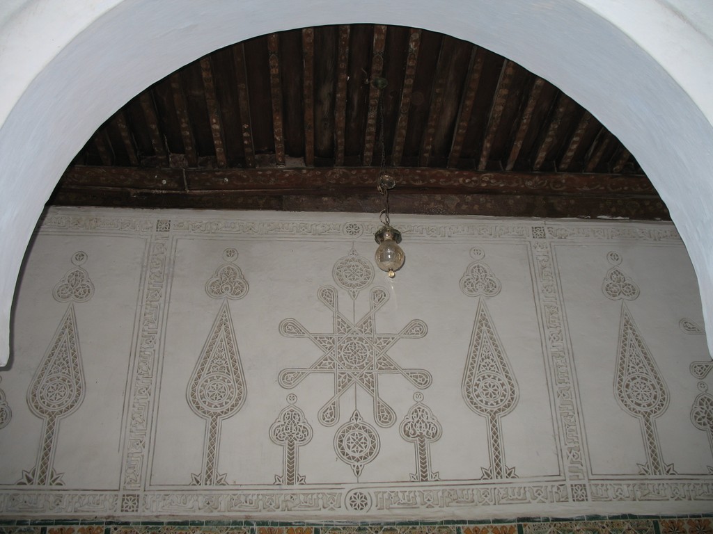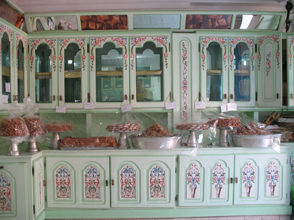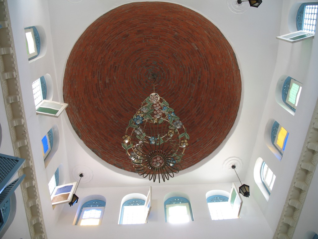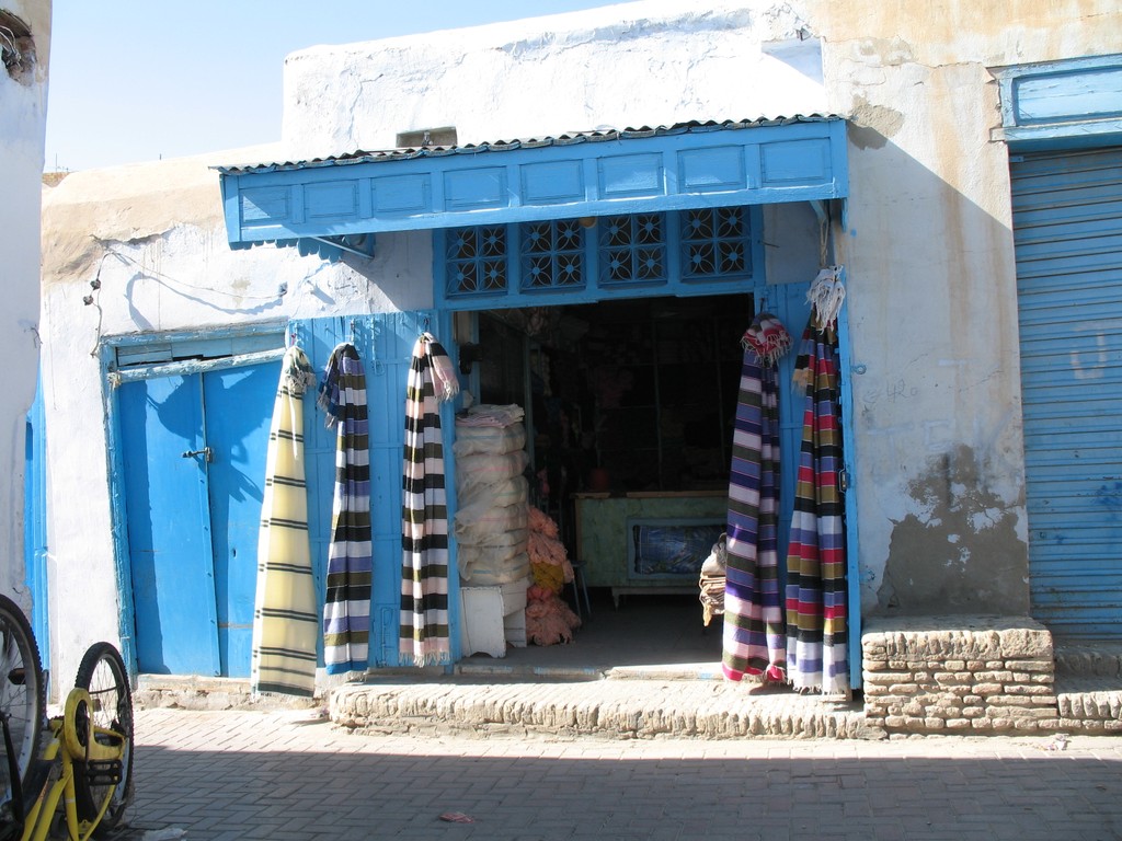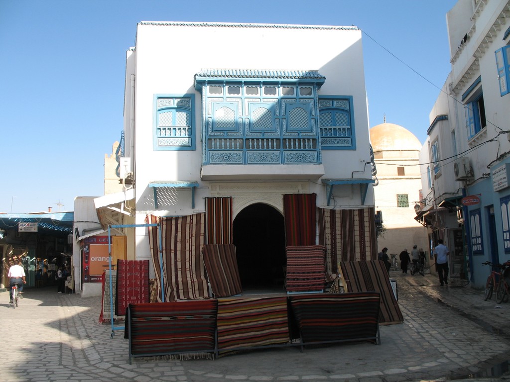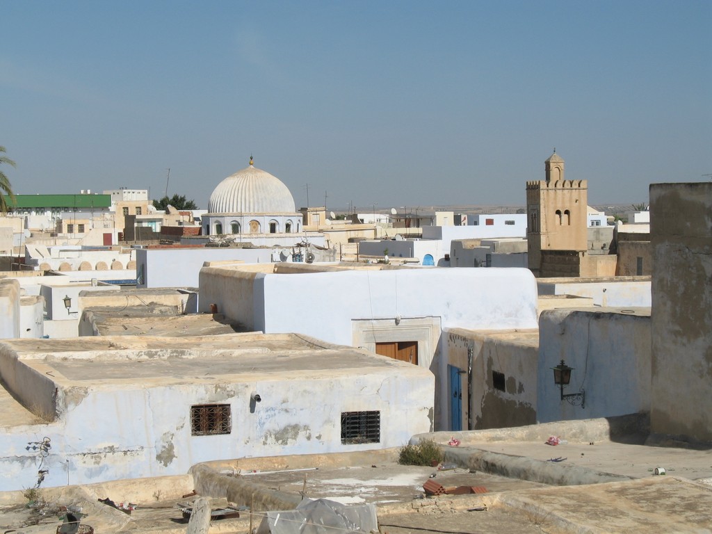 Un marchand de tapis me propose de contempler la vue depuis son toit. Je passe dans une pièce superbe, pleine de tapis, décorée d’une coupole en brique, qui reçoit sa lumière d’une galerie de fenêtres à vitres de couleurs, je grimpe dans des escaliers pleins de tapis, et je débouche, oh joie, sur une terrasse de toit somptueuse, la vue à l’infini. Il me laisse courtoisement là, seule tant que je veux pour rêver des tableaux peints par Klee dans la même lumière, dans un autre temps. Un jour seulement à Kairouan, si rempli que j’ai l’impression d’y avoir fait un long séjour…